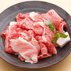 通常、切り落としはその名の通り、切れ端を集めたものですが、こちらは熟練した職人が「切り落とし用」にスライスし、バランスよく盛り合わせます。一枚が大きく初めて見た方は「すき焼き用」のお肉と間違われることも。
